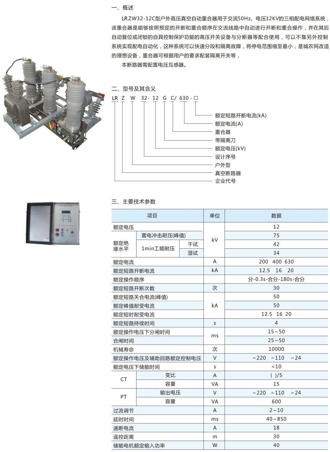• ZW32-12(G)C帶電壓互感器和重合器真空斷路器