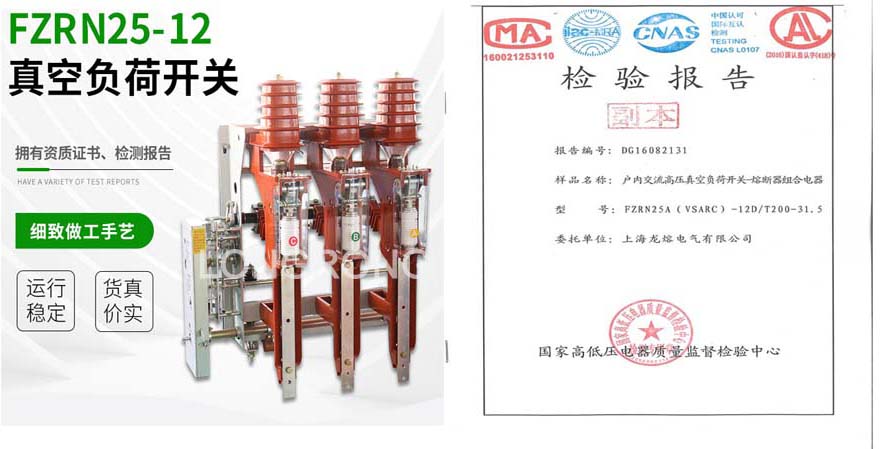 FZRN25-12真空負荷開關和組合電器,適用于三相交流50Hz環(huán)網(wǎng)或終端供電和工業(yè)用電設備中,作負荷控制和短路保護之用,負荷開關分合負荷、閉環(huán)電流、空載變壓器和電纜充電電流。組合電器可以開斷直至額定短路電流的任何電流。采用直動式隔離斷口和真空滅弧室聯(lián)動。具有手動和電動功能。
