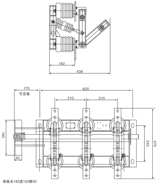 本隔離開關(guān)的導(dǎo)電部分主要由觸刀與靜觸頭組成,靜觸頭裝在兩端的支柱絕緣子上,每相觸刀由兩片槽型圖片組成,它不僅增大了觸刀散熱面積,對降低升溫有利,而且提高了觸刀的機(jī)械強(qiáng)度,使開關(guān)的動穩(wěn)定性提高,觸刀一端通過軸銷安裝在靜觸頭上,其接觸觸刀的另一端與靜觸頭系可分連接,而觸刀接觸壓力靠兩端接觸彈簧來維持。底架裝配:由底架主軸、限值板組成,限位板主要用來保證導(dǎo)電觸刀“分”“合”時(shí)得到所要求的終點(diǎn)位置。