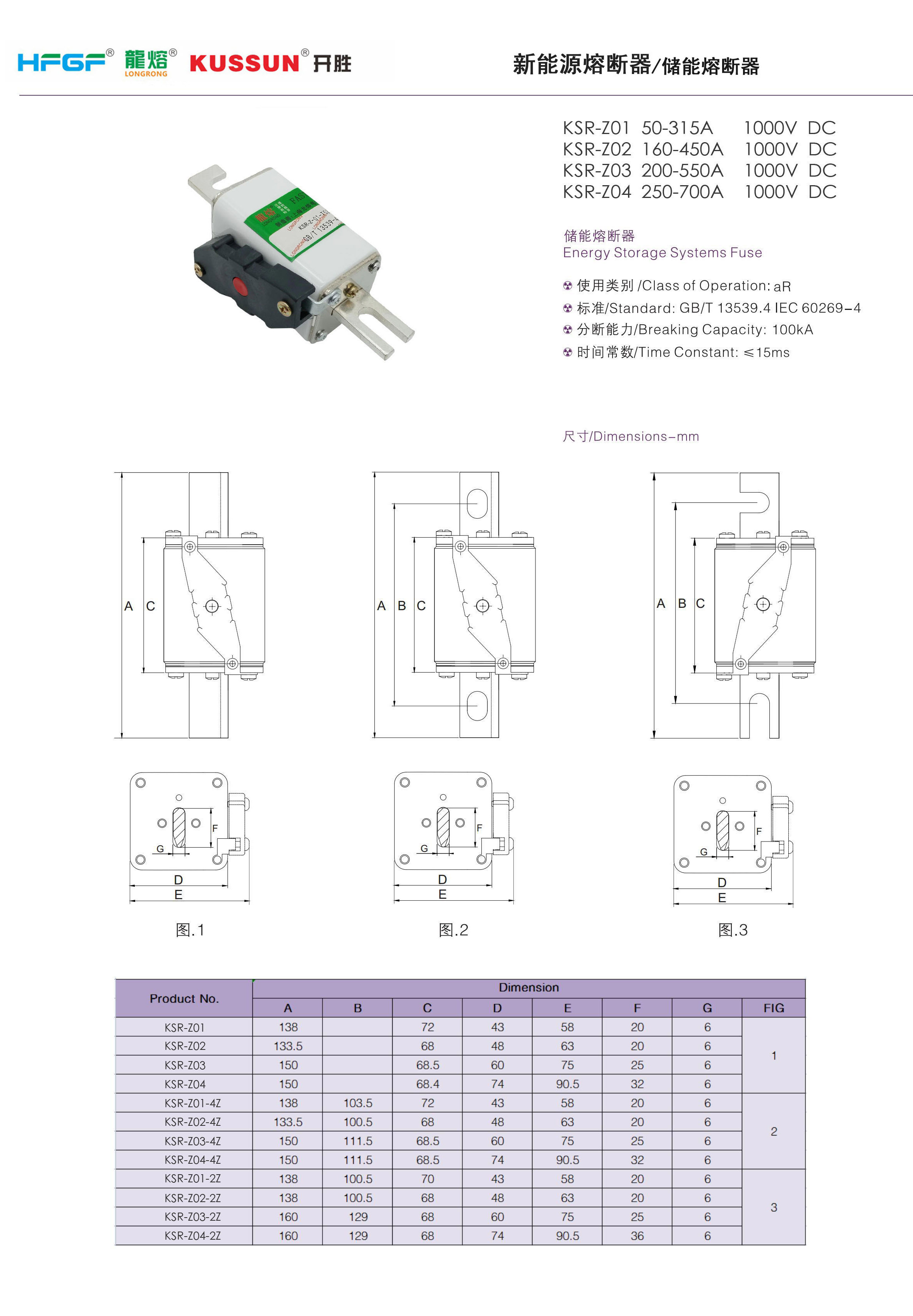 • KSR-Z 1000VDC 系列儲(chǔ)能熔斷器 掛勾式/新能源熔斷器