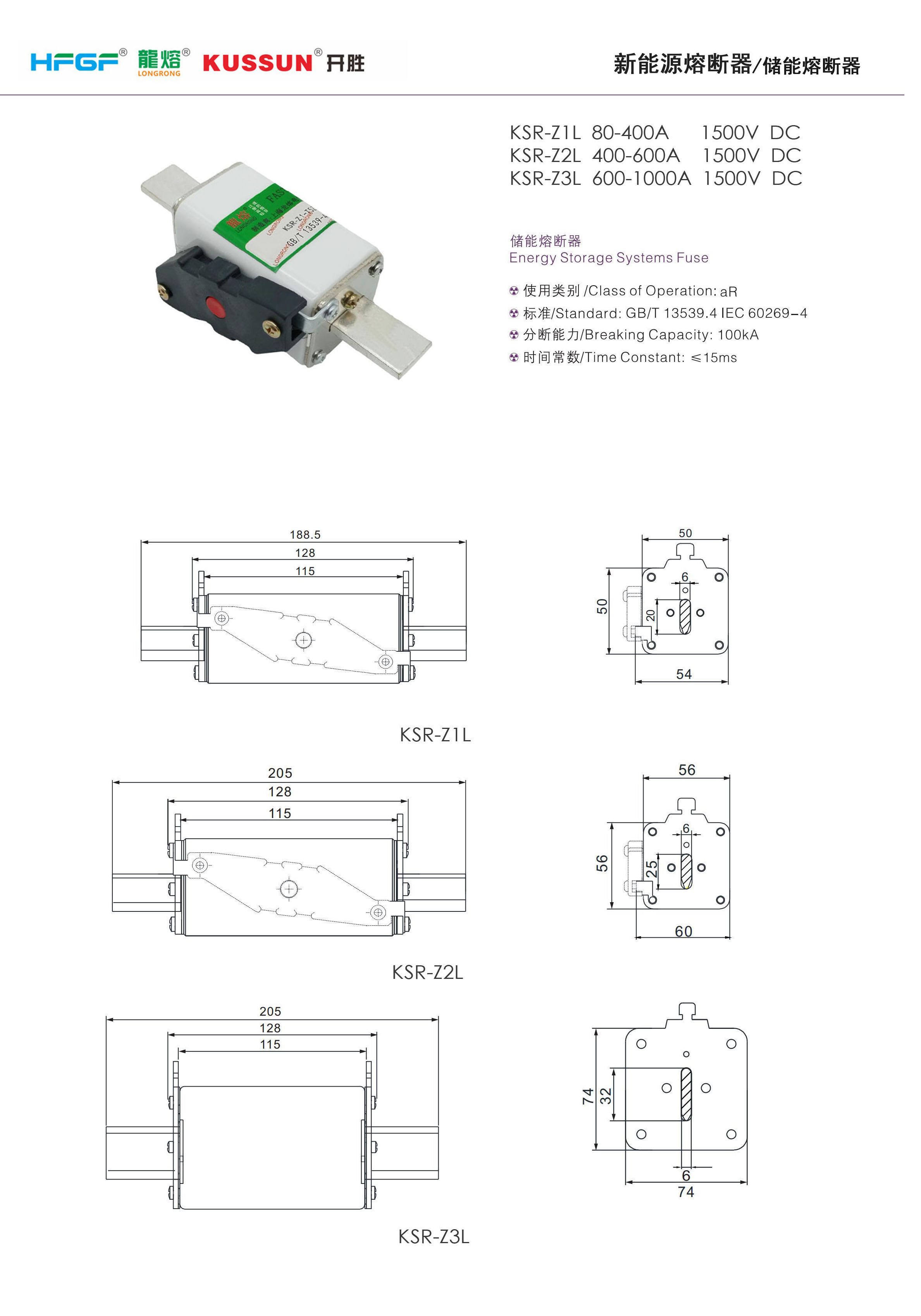• KSR-Z 1500VDC系列儲能熔斷器 刀插式/新能源熔斷器