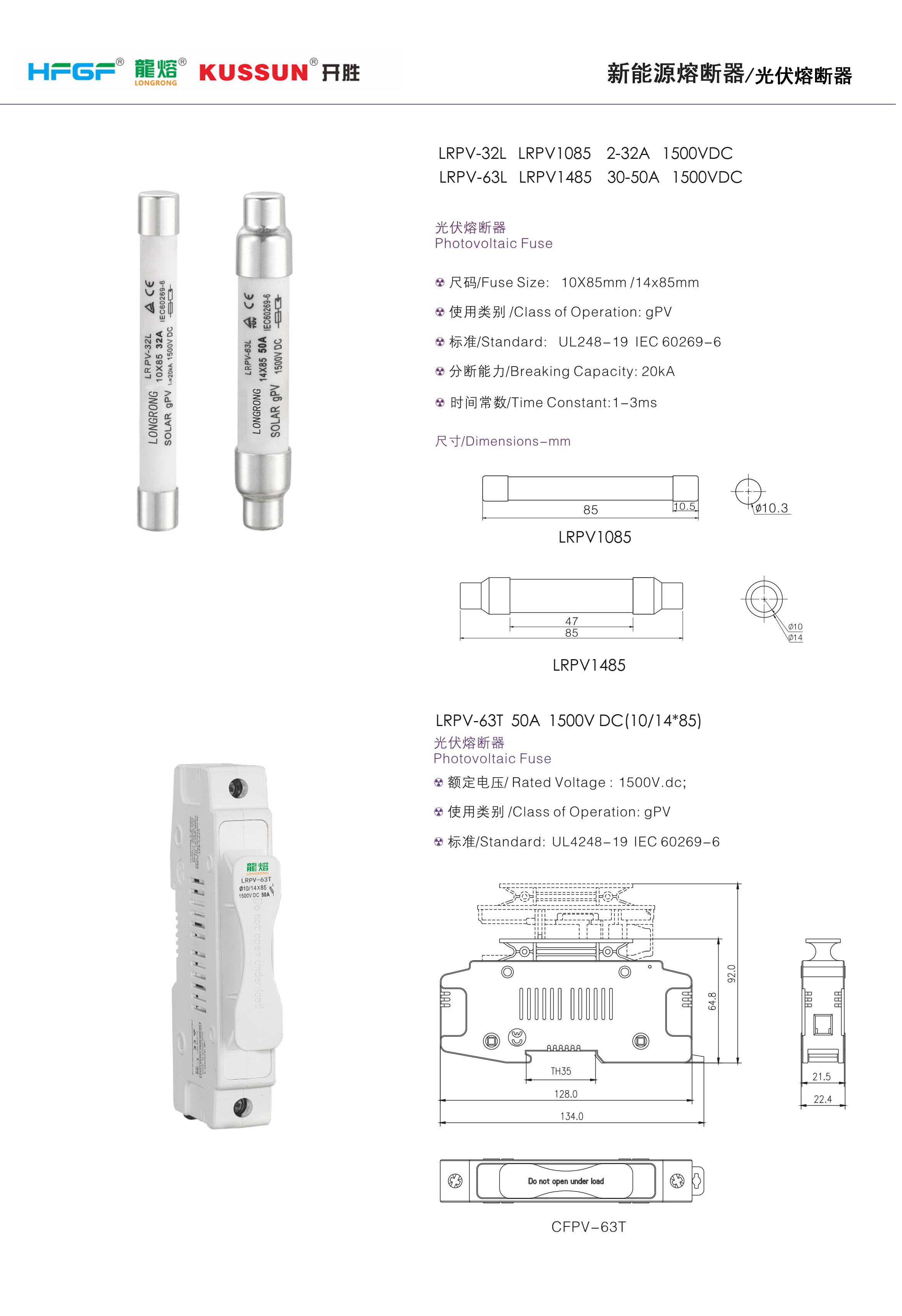 • LRPV1085 1500VDC光伏熔斷器/新能源熔斷器