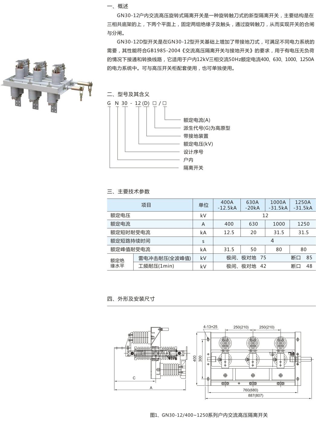• GN30-12(D)旋轉(zhuǎn)式戶內(nèi)交流高壓隔離開關(guān)