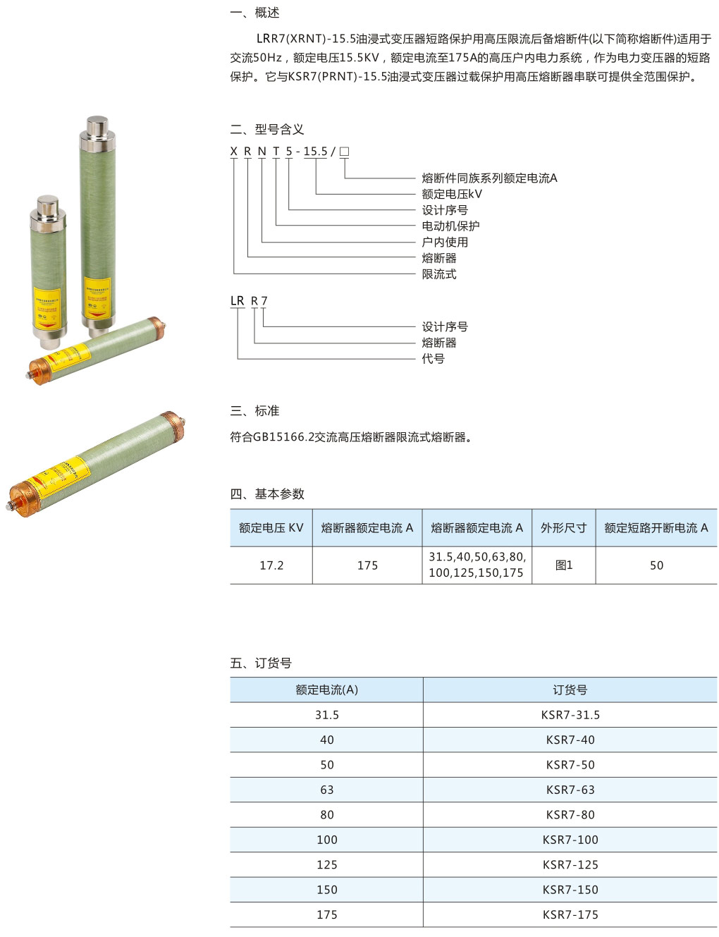 • LRR7(XRNT)-15.5油浸式變壓器短路保護(hù)用高壓限流后備熔斷器