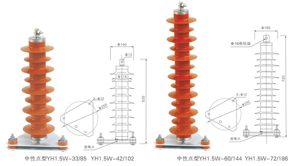 中性點(diǎn)避雷器 YH1.5W-33/85 YH1.5W-42/102 YH1.5W-60/144 YH1.5W-72/186