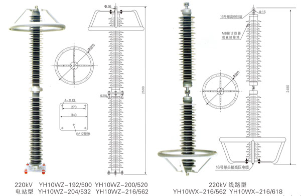 220KV線路型 YH10WX-216/562 YH10WX-216/618