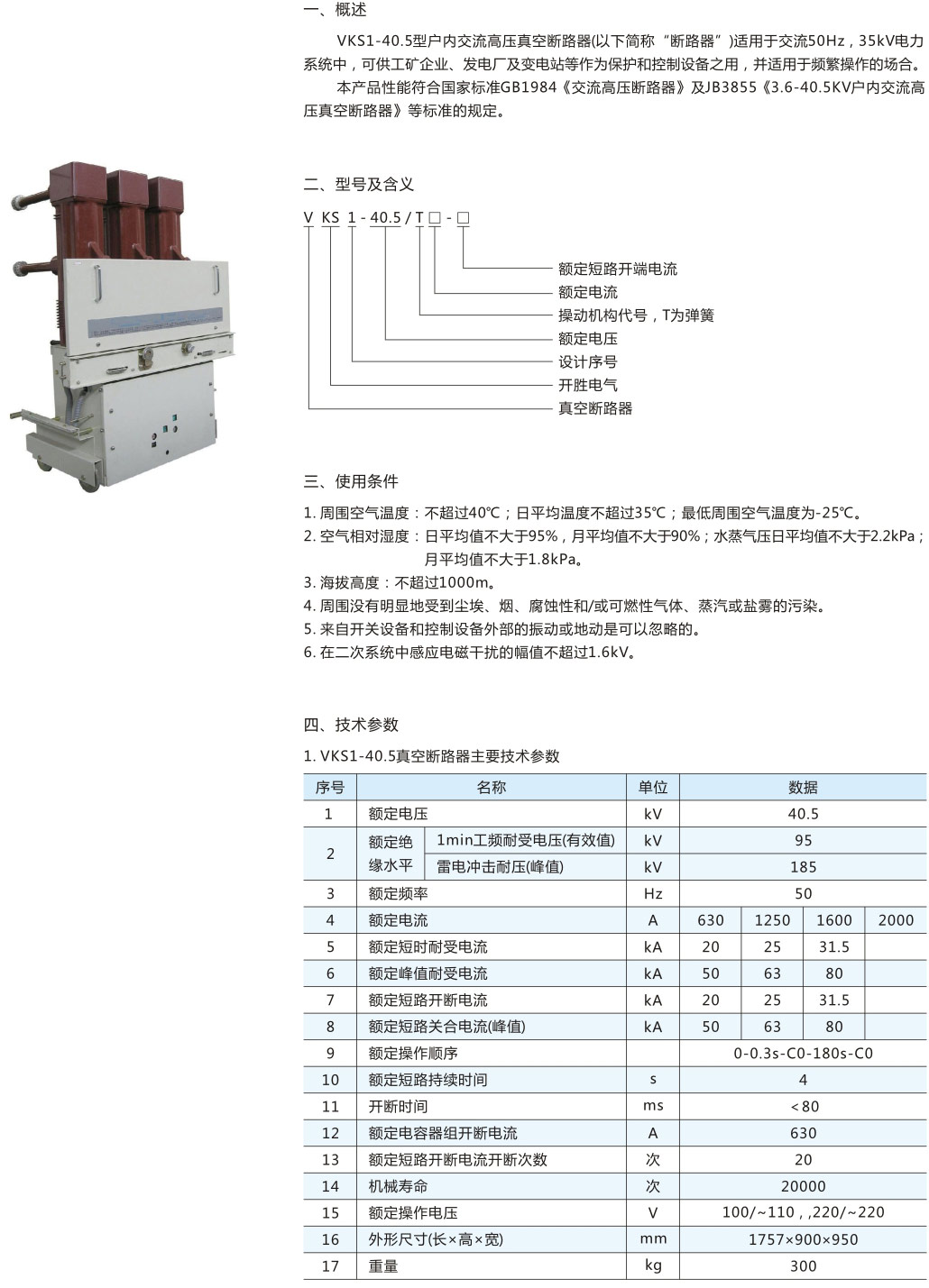 • VKS1-40.5戶內(nèi)高壓真空斷路器