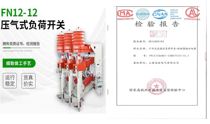 概述 FN12-12D/630-20型戶內(nèi)交流高壓負(fù)荷開關(guān)(以下簡(jiǎn)稱FN12-12D負(fù)荷開關(guān))是額定電壓為12KV,額定頻率為50Hz的三相高壓開關(guān)設(shè)備,用于分合負(fù)荷電流,空載變壓器和電纜充電電流,關(guān)合短路電流。配裝接地開關(guān)的負(fù)荷開關(guān),可以承受短時(shí)電流。 FN-12(R)D/100-31.5型高壓負(fù)荷開關(guān)-熔斷器組合電器(以下簡(jiǎn)稱FN12-12(R)D組合電器),是在FN7-12D負(fù)荷開關(guān)與S□LAJ-12(XRNT□-10)高壓限流式熔斷器組合在一起的戶內(nèi)高壓開關(guān)設(shè)備。它可以開斷直至短路電流的任何電流;負(fù)荷開關(guān)開斷工作電流,熔斷器開斷短路電流,聯(lián)合開斷工作電流與全短路電流之間的任何電流,同時(shí)熔斷器通過其碰撞使負(fù)荷開關(guān)分閘。