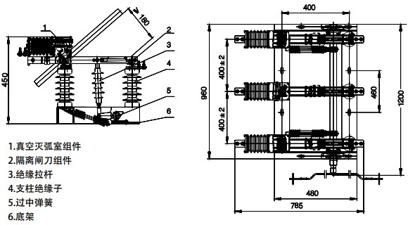 1min工頻耐受電壓:真空斷口、相間、相對(duì)地/隔離斷口