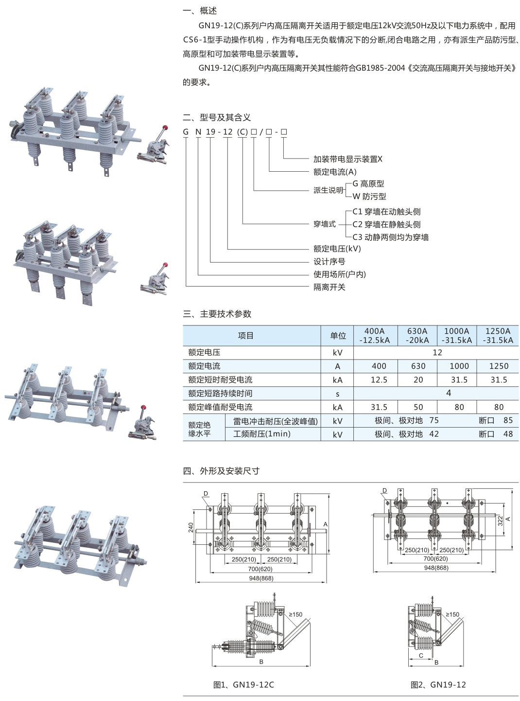 GN19-10(GN19-10C)系列戶內高壓隔離開關參數(shù)表: