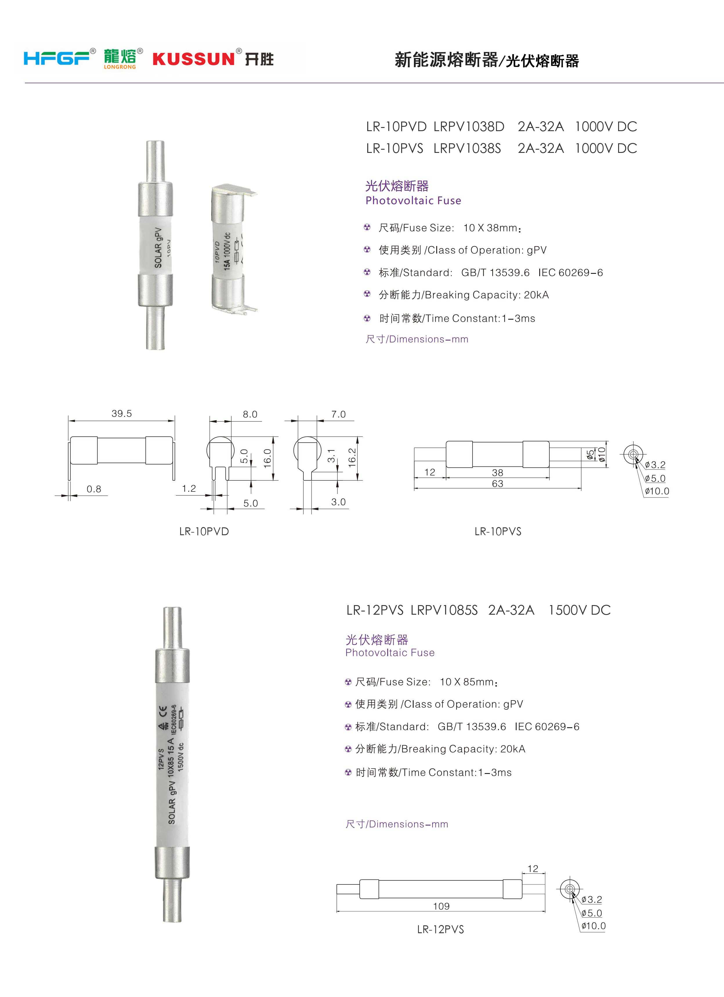 • LR-10PVD、LR-10PVS 1000VDC系列光伏熔斷器/新能源熔斷器