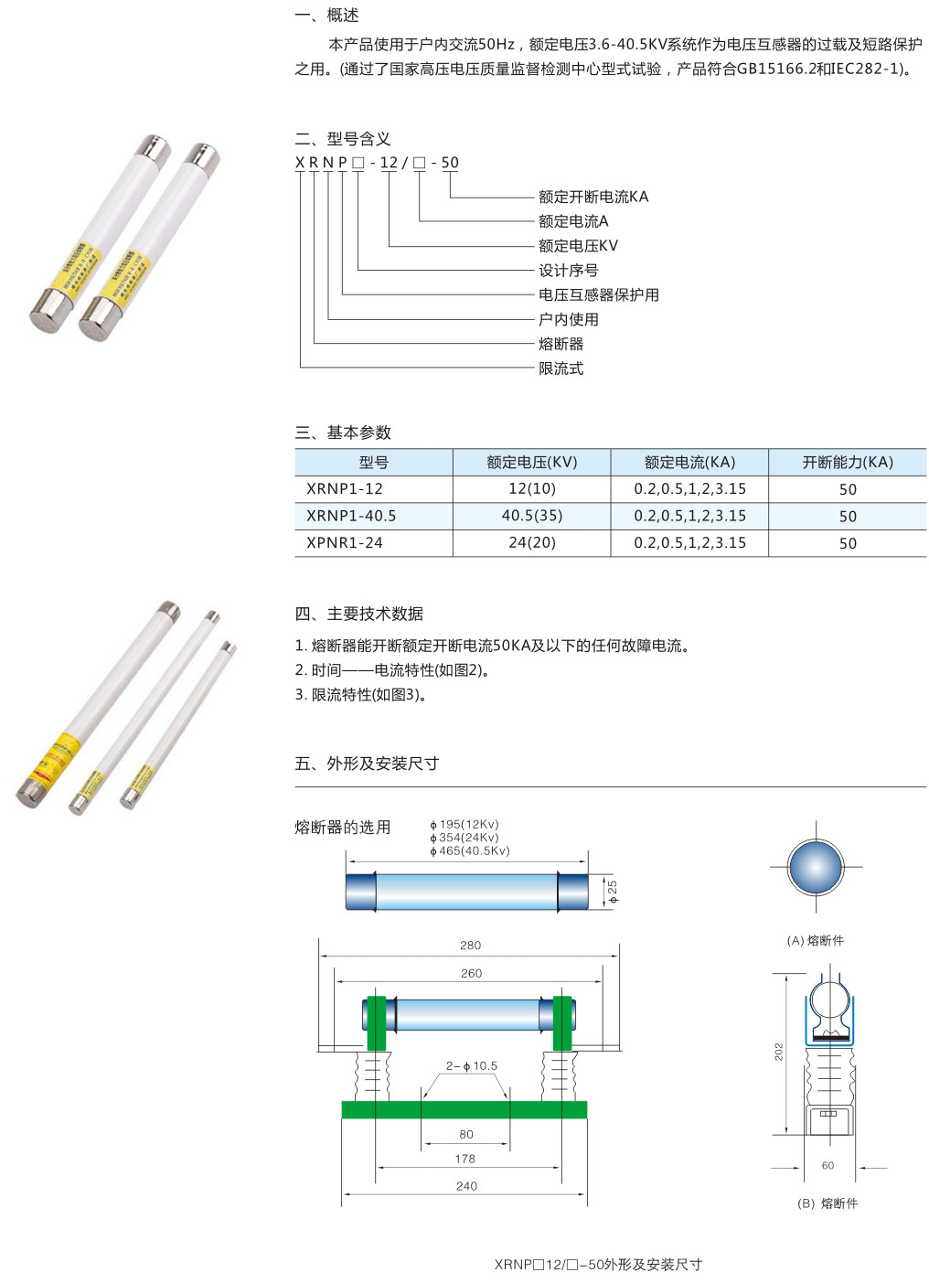 • XRNP1電壓互感器保護(hù)用高壓限流熔斷器