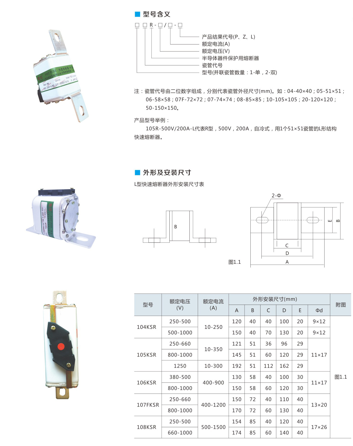 • KSR系列半導(dǎo)體器件保護(hù)用快速熔斷器